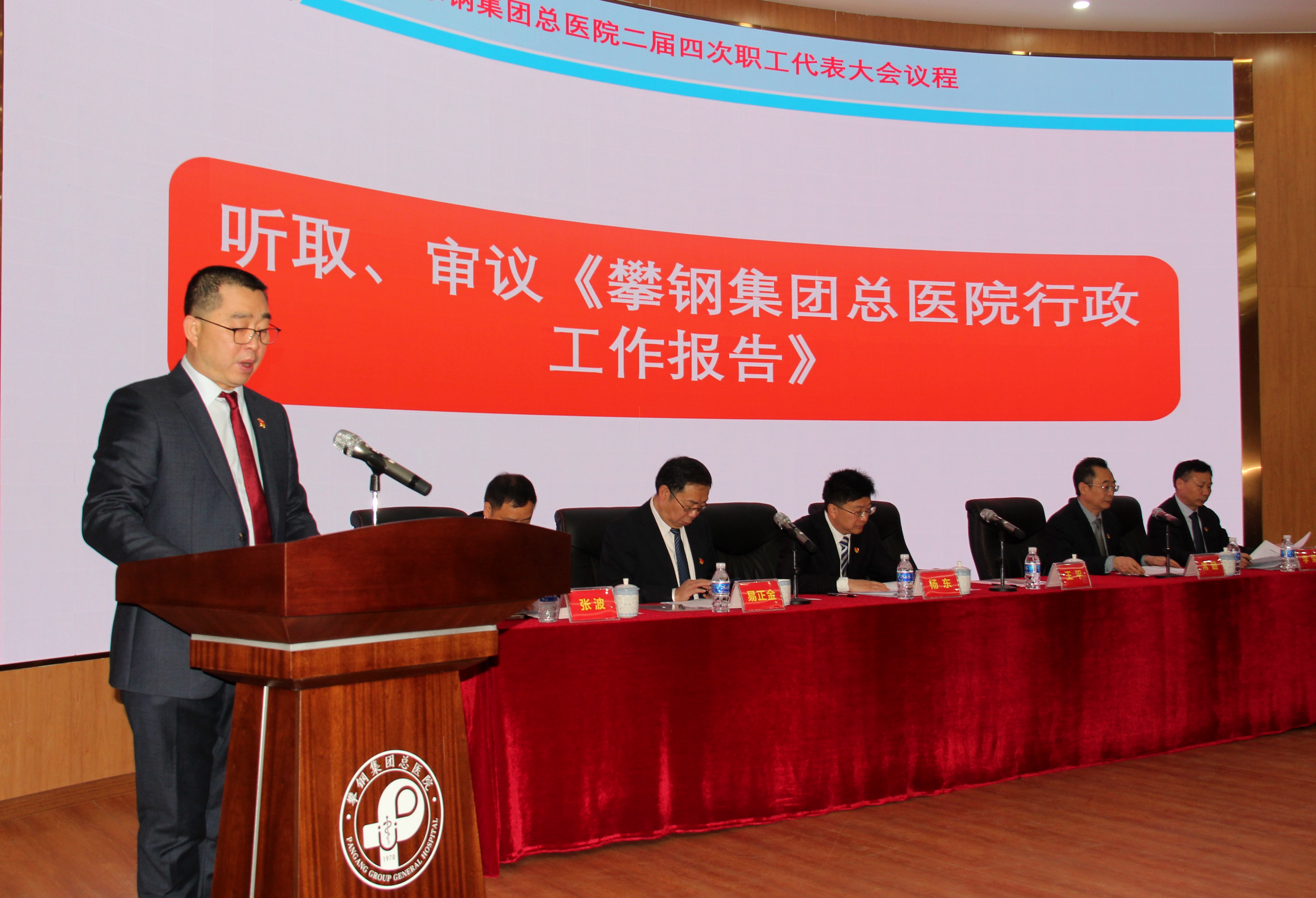 攀鋼集團(tuán)總醫(yī)院院長(zhǎng)王平向大會(huì)作題為《攻堅(jiān)克難 贏得疫情防控、運(yùn)營(yíng)績(jī)效雙勝利,銳意進(jìn)取 開(kāi)啟深化改革、戰(zhàn)略落地新征程》的行政工作報(bào)告。