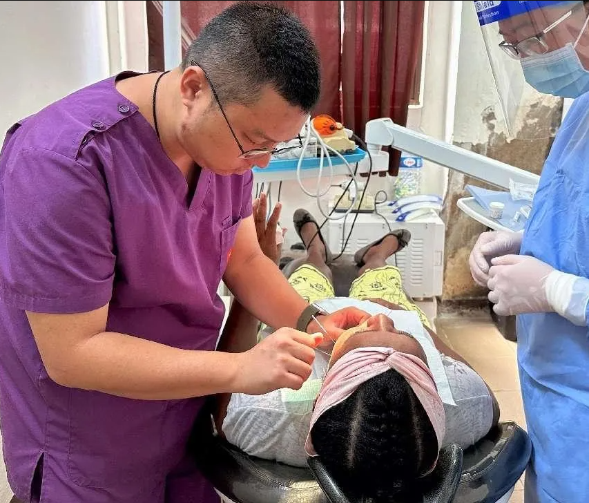 近日,第18批援圣普醫(yī)療隊為當?shù)匾幻颊甙窝罆r,通用技術(shù)環(huán)球醫(yī)療攀鋼總醫(yī)院盧憶醫(yī)生首次采取了針灸輔助鎮(zhèn)痛法,與口腔醫(yī)生楊波默契配合,順利為患者拔除病牙。