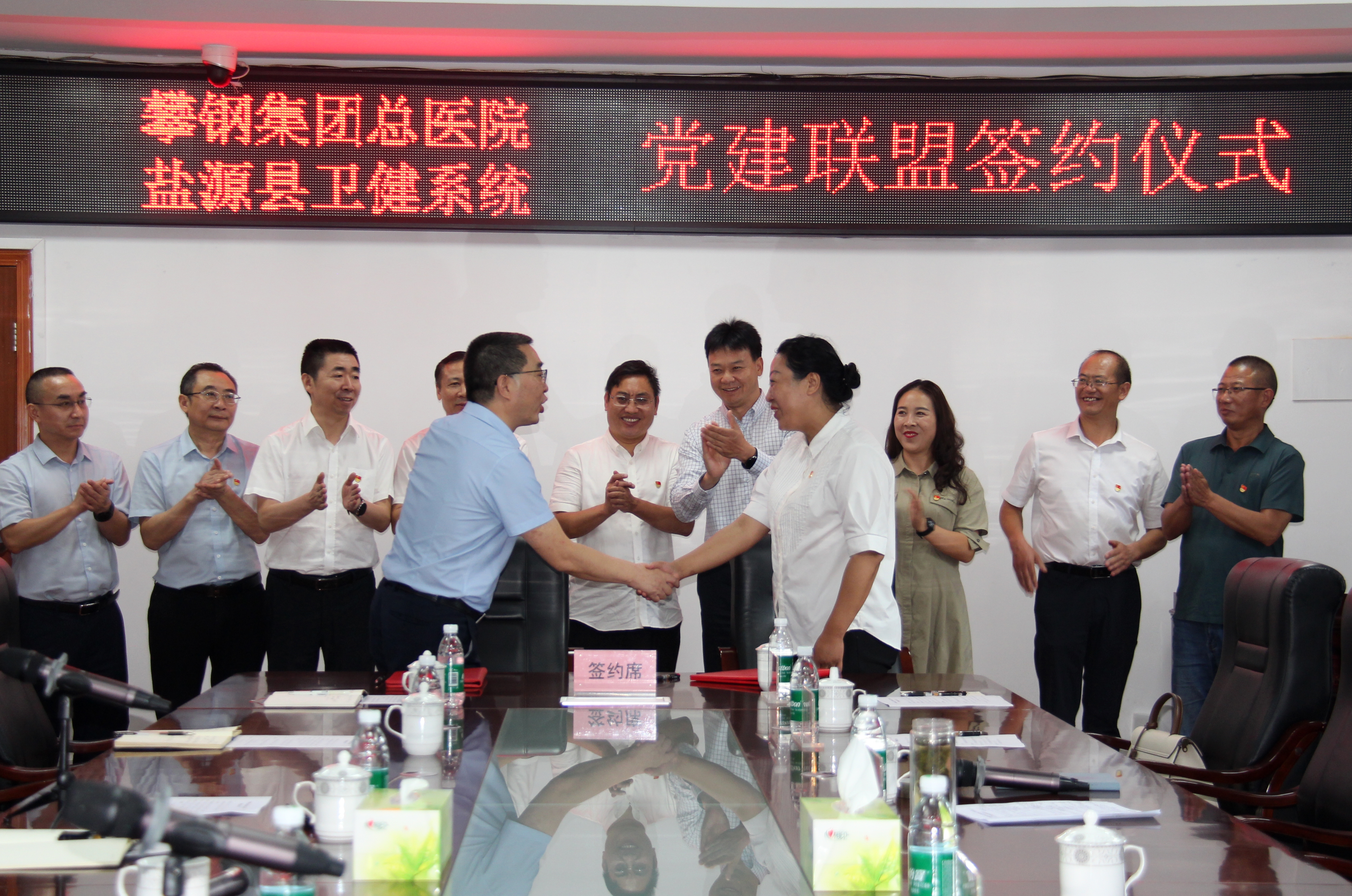 9月13日,攀鋼總醫(yī)院與涼山州鹽源縣衛(wèi)生健康局在攀鋼總醫(yī)院舉行了黨建聯(lián)盟簽約儀式,正式開(kāi)啟了雙方黨建引領(lǐng)、資源共享、共同發(fā)展、共筑百姓健康夢(mèng)的新篇章。攀鋼總醫(yī)院領(lǐng)導(dǎo)班子成員、黨支部書(shū)記,鹽源縣衛(wèi)生健康局局長(zhǎng)、副局長(zhǎng)及部分醫(yī)療衛(wèi)生機(jī)構(gòu)負(fù)責(zé)人參加簽約儀式。