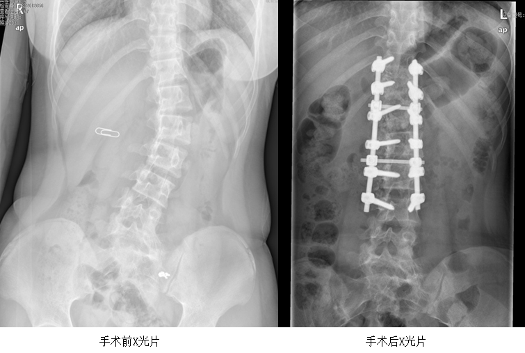 骨科脊柱外科團隊為確保手術(shù)萬無一失,反復(fù)研究病例,制定了一套縝密的手術(shù)方案。充分的術(shù)前準(zhǔn)備后,在麻醉科的全力配合下,手術(shù)團隊進行了經(jīng)后路截骨矯形椎弓根釘棒系統(tǒng)內(nèi)固定、椎板間植骨融合手術(shù),術(shù)中利用自體回收血,術(shù)中喚醒,保障了手術(shù)安全。經(jīng)過5個小時,手術(shù)順利完成。