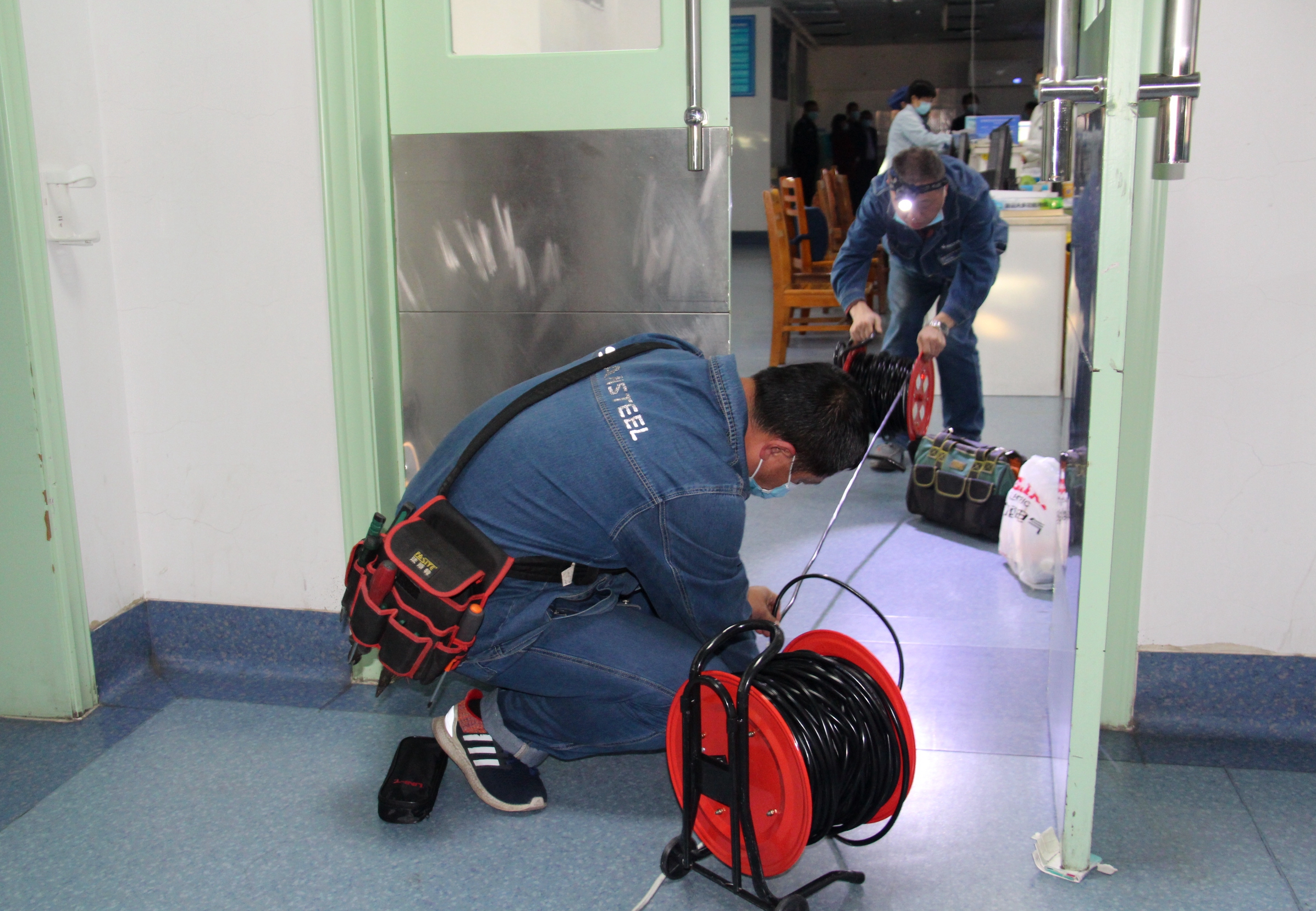 啟動(dòng)發(fā)電機(jī)、快速布線、將插座布置到病床頭、連接搶救設(shè)備、安裝照明燈具……不到5分鐘,2個(gè)LED照明燈在病情最重的2張病床前后都亮起來了。2名電工火速開始排查病房內(nèi)線路和配電箱。