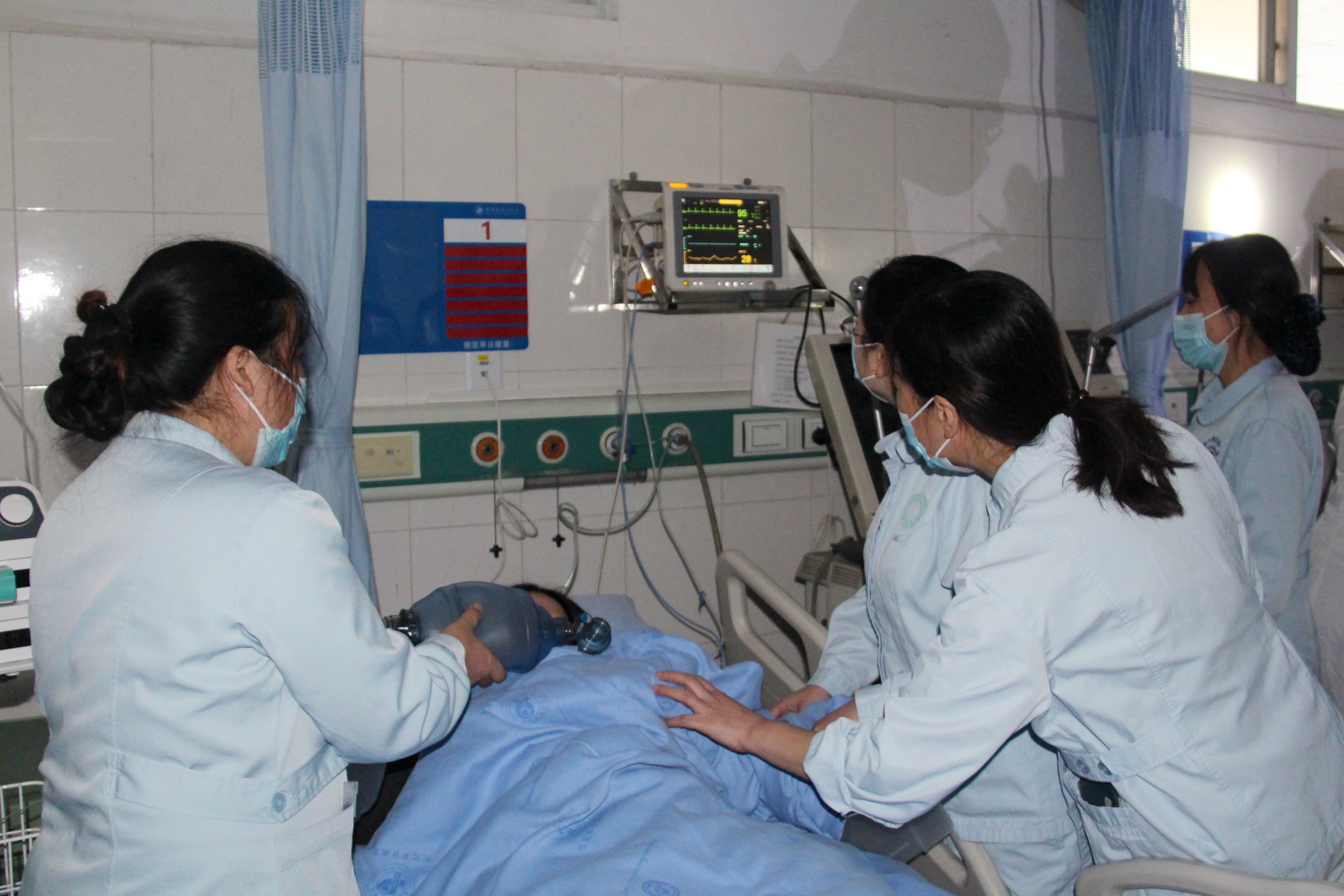 最重的1號(hào)病床前,護(hù)士立即啟動(dòng)應(yīng)急燈照明,另一名護(hù)士立即斷開呼吸機(jī)管道,密切關(guān)注患者脈搏及生命體征變化,一位醫(yī)生迅速手持簡易呼吸氣囊進(jìn)行人工輔助呼吸。