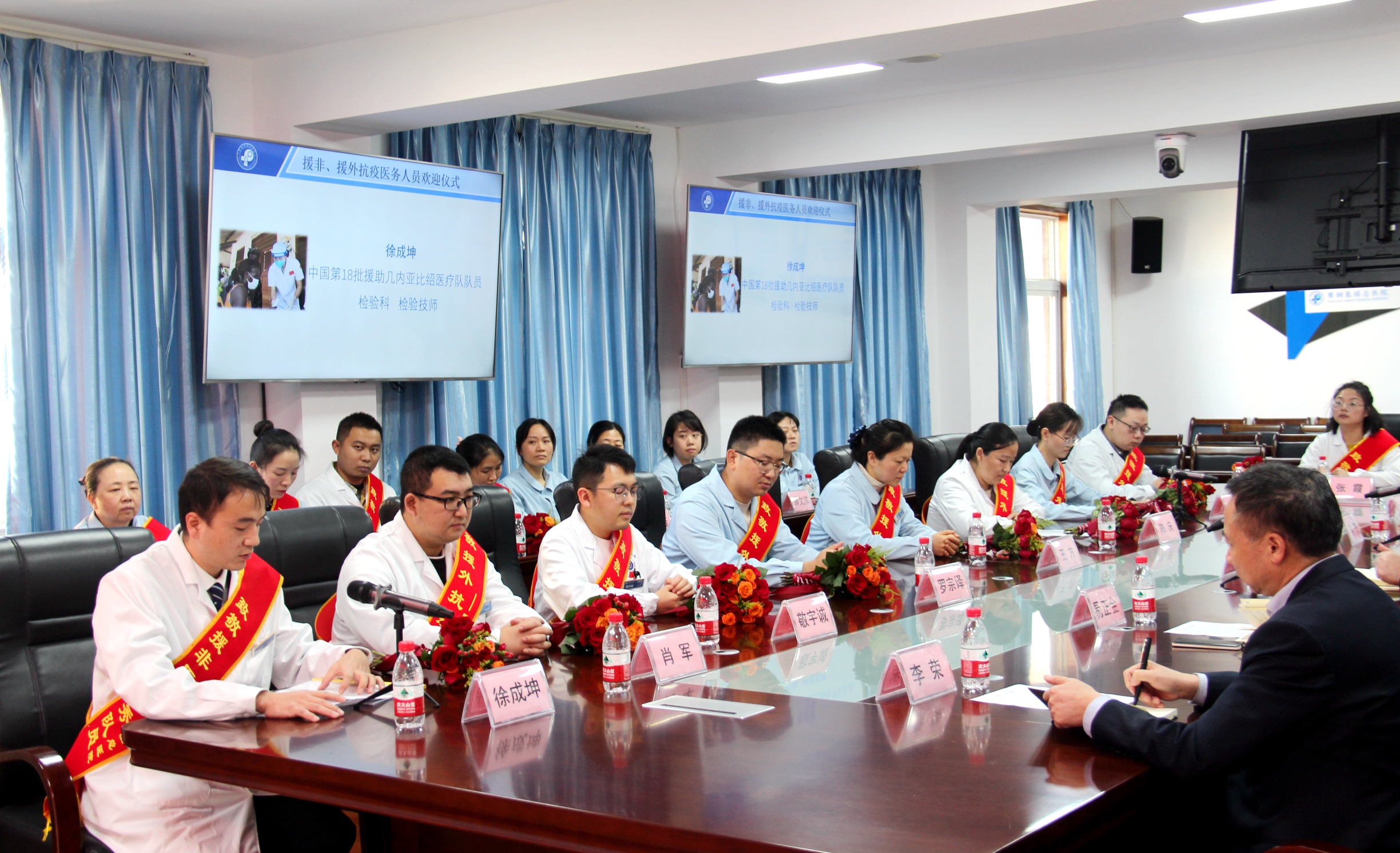 12月8,攀鋼總醫(yī)院舉行隆重的歡迎儀式,院領(lǐng)導(dǎo)為勇士們佩戴綬帶、贈送鮮花。鮮花伴著掌聲,歡迎勇士們榮耀歸來。