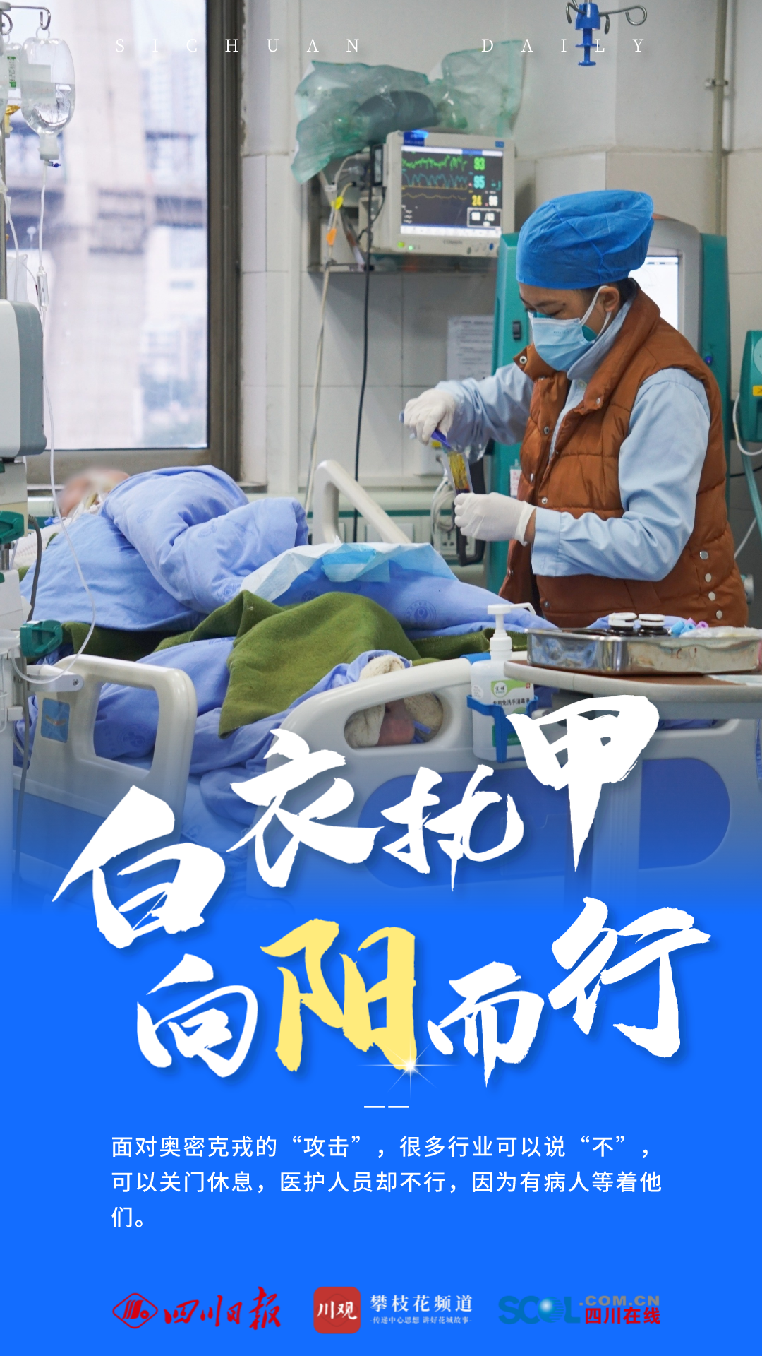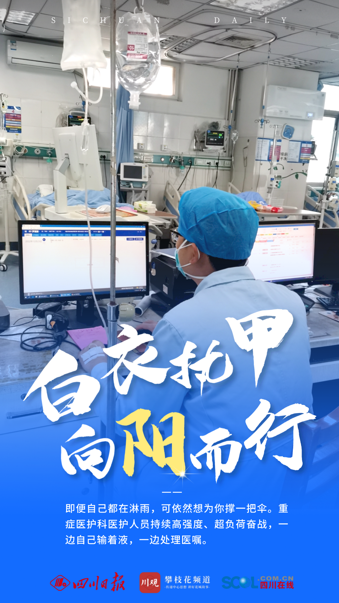 “放開前最難的是醫(yī)護,放開后最難的還是醫(yī)護。即便自己都在淋雨,可依然想為你撐一把傘……”面對“兵力不足”的考驗,攀鋼總醫(yī)院醫(yī)護工作者們選擇在危急時刻站出來、頂上去,持續(xù)高強度、超負荷奮戰(zhàn),筑起守護生命健康的鋼鐵防線。他們,用身體力行詮釋著醫(yī)者的責任與擔當;他們,是這個特殊“凜冬”的一縷“暖陽”。