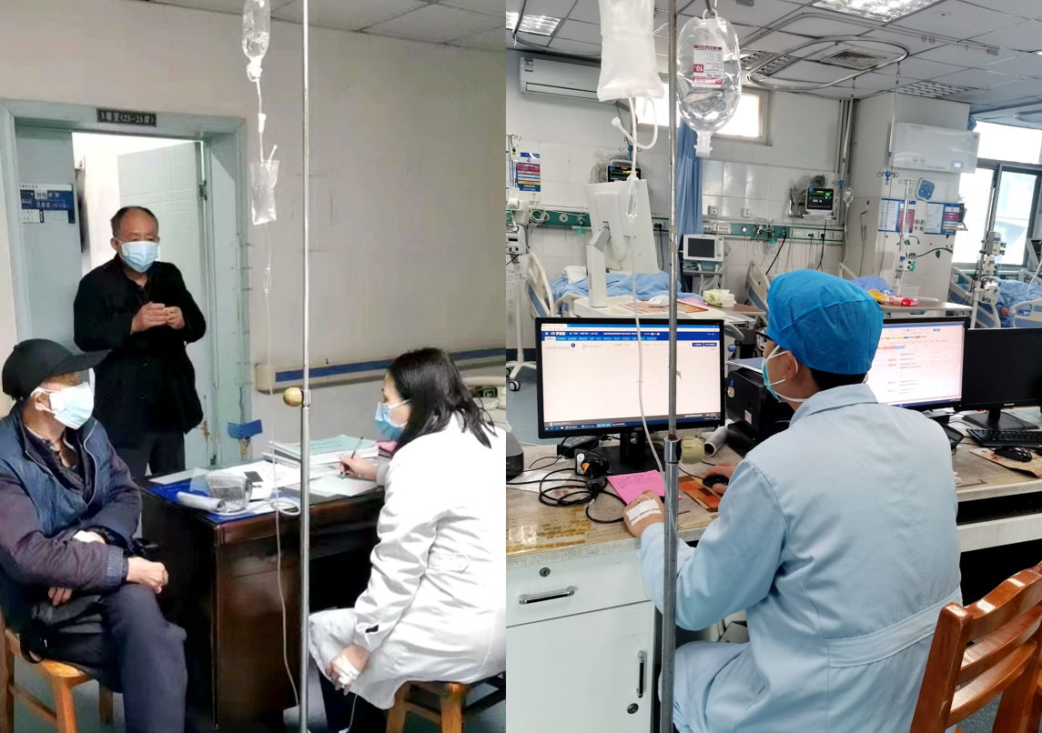 即便自己都在淋雨,也依然想為你撐一把傘。醫(yī)護(hù)人員持續(xù)高強(qiáng)度、超負(fù)荷奮戰(zhàn),全科醫(yī)學(xué)科醫(yī)生唐靜高燒39.6,聲音嘶啞,掛著吊瓶堅(jiān)持為患者診治;重癥醫(yī)學(xué)科護(hù)士羅宗譯一邊自己輸著液,一邊處理醫(yī)囑。