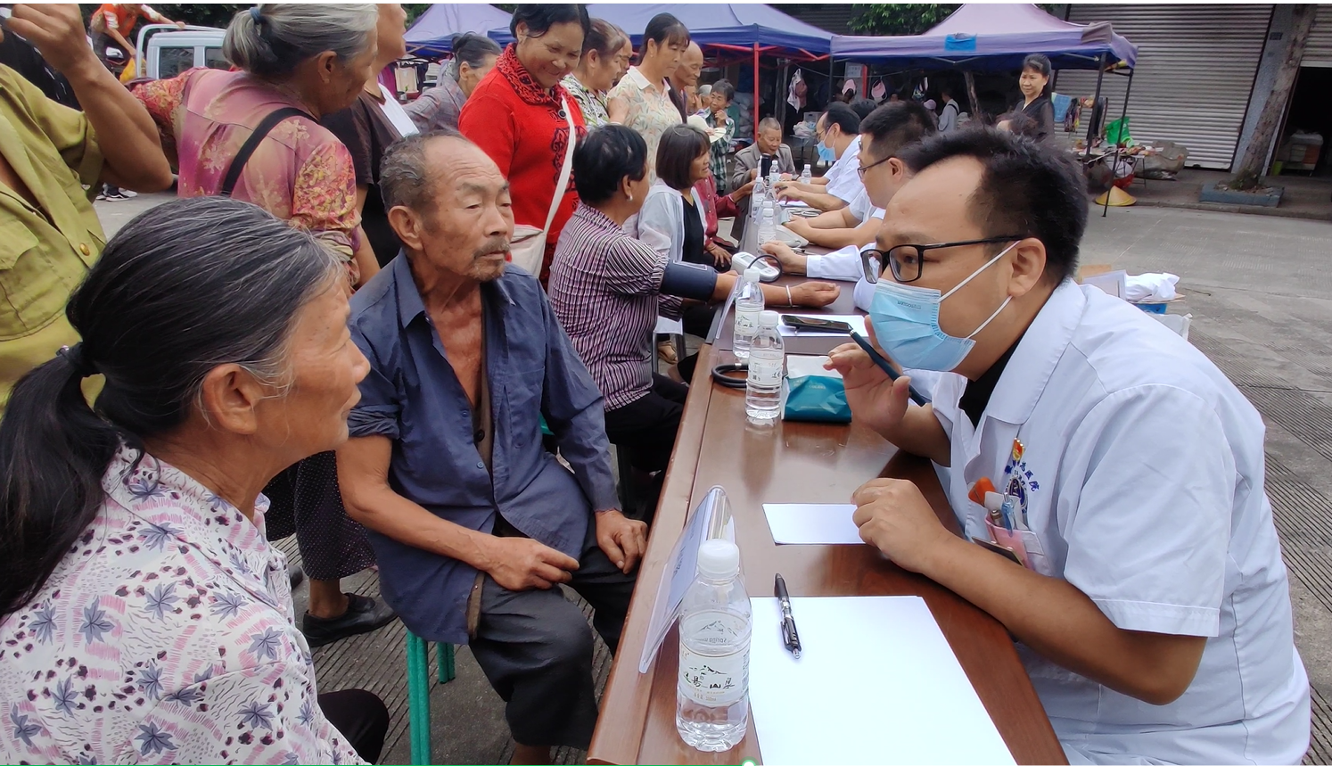 前期,鄉(xiāng)政府對(duì)此次健康義診進(jìn)行了廣泛宣傳,所以義診還沒(méi)開始,已經(jīng)有不少村民早早等候在集市中提前搭好的義診區(qū)。專家們馬上進(jìn)入工作狀態(tài),聽診、觸診、健康科普與宣教……
