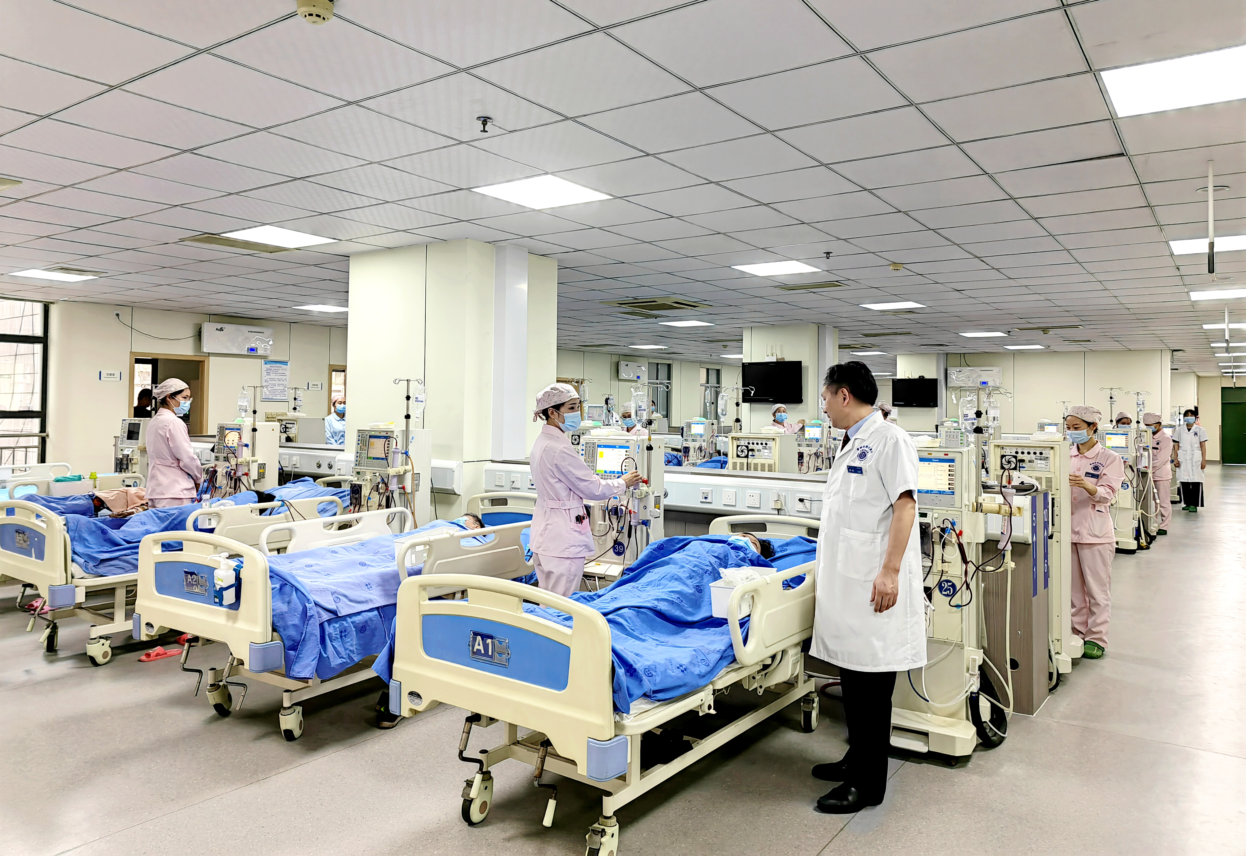 科室緊跟學(xué)科技術(shù)前沿,一直是本區(qū)域規(guī)模最大、開展技術(shù)最全面的專業(yè)科室。在省內(nèi)較早開展腎臟病理穿刺、腹膜透析、血液透析、腎移植等先進(jìn)技術(shù)。近年來,科室廣泛開展運(yùn)用新型免疫抑制藥物治療腎臟?。谎簝艋夹g(shù)在各種復(fù)雜危重腎病患者中救治中成效顯著;復(fù)雜的半永久置管、彩超引導(dǎo)下動(dòng)靜脈球囊擴(kuò)張、DSA介入的中心靜脈狹窄球囊擴(kuò)張手術(shù);動(dòng)靜脈內(nèi)瘺手術(shù)、繼發(fā)性甲旁亢的治療等都在區(qū)域內(nèi)處于領(lǐng)先水平。目前開展的慢性腎臟病全程管理,將惠及更多腎臟病患者。