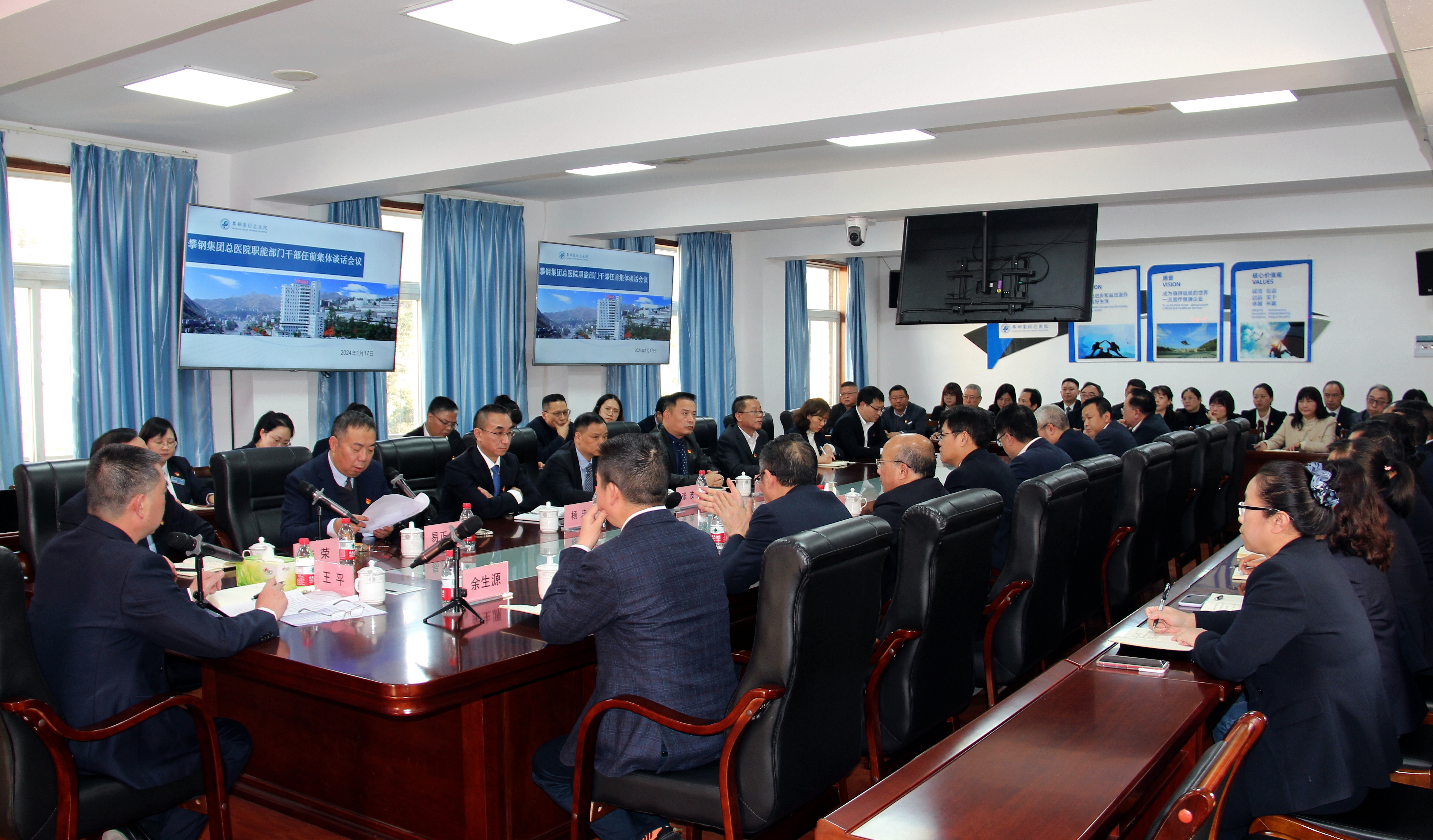 1月17日,攀鋼總醫(yī)院召開職能部門干部任前集體談話會,院領導班子成員及新調(diào)整的41名職能科室管理干部參加談話會。