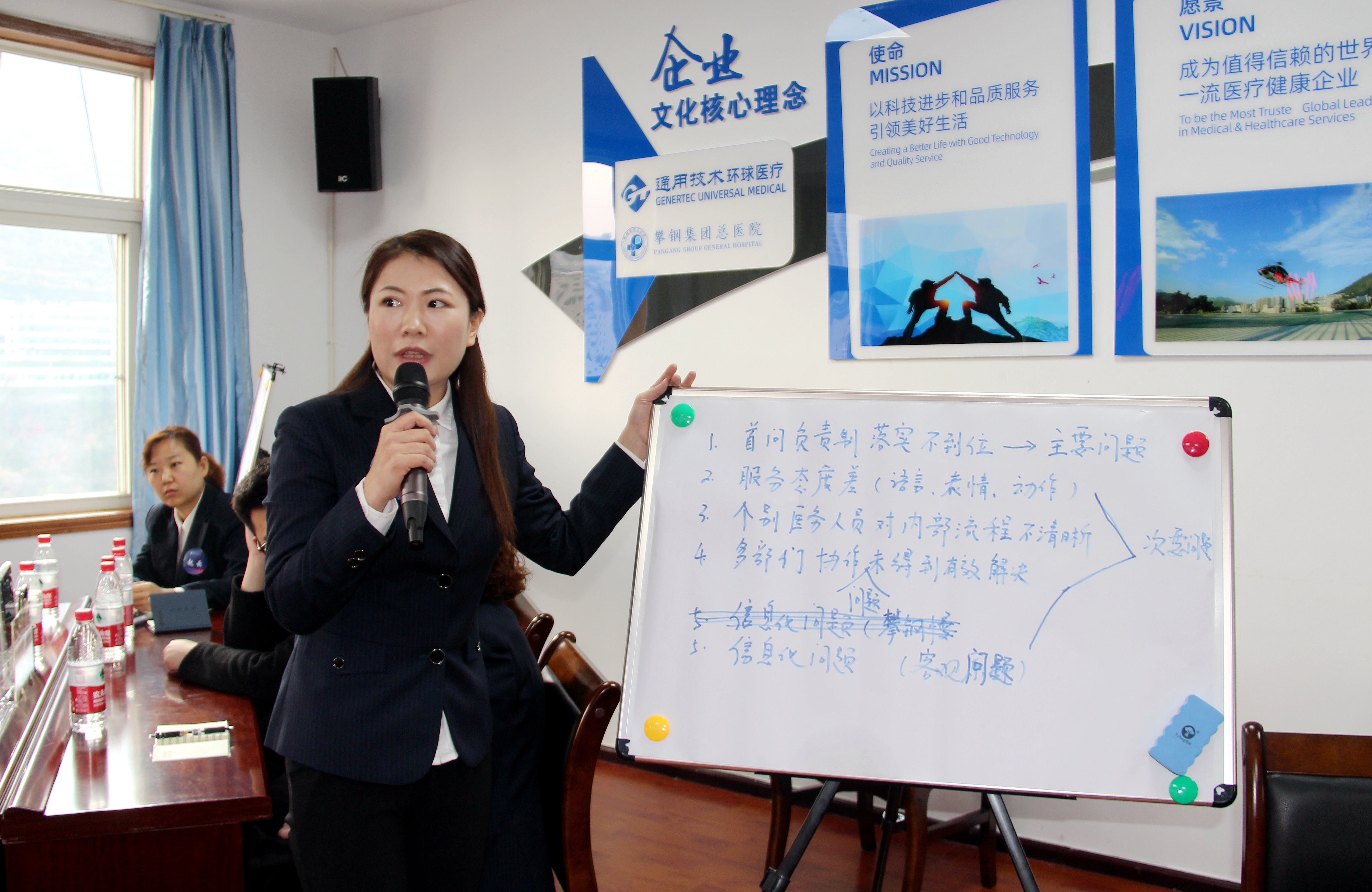 研討會共分榜樣啟迪、思維碰撞、尋求根因、出謀獻策四個環(huán)節(jié)。每個環(huán)節(jié)均采取分組討論、成果展示與集中梳理、達成共識相結合的方式進行,經(jīng)過激烈的思想碰撞,全面查找出當前醫(yī)院窗口服務質量存在的4個方面的主要問題和6個方面的主要原因,總結出整改措施10余條。