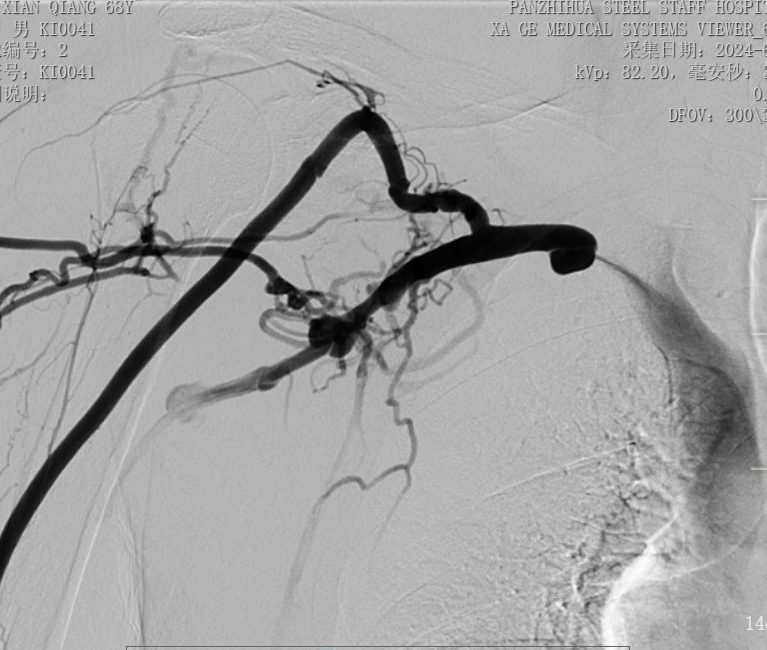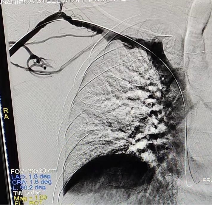 術(shù)前造影顯示右鎖骨下靜脈幾乎閉塞