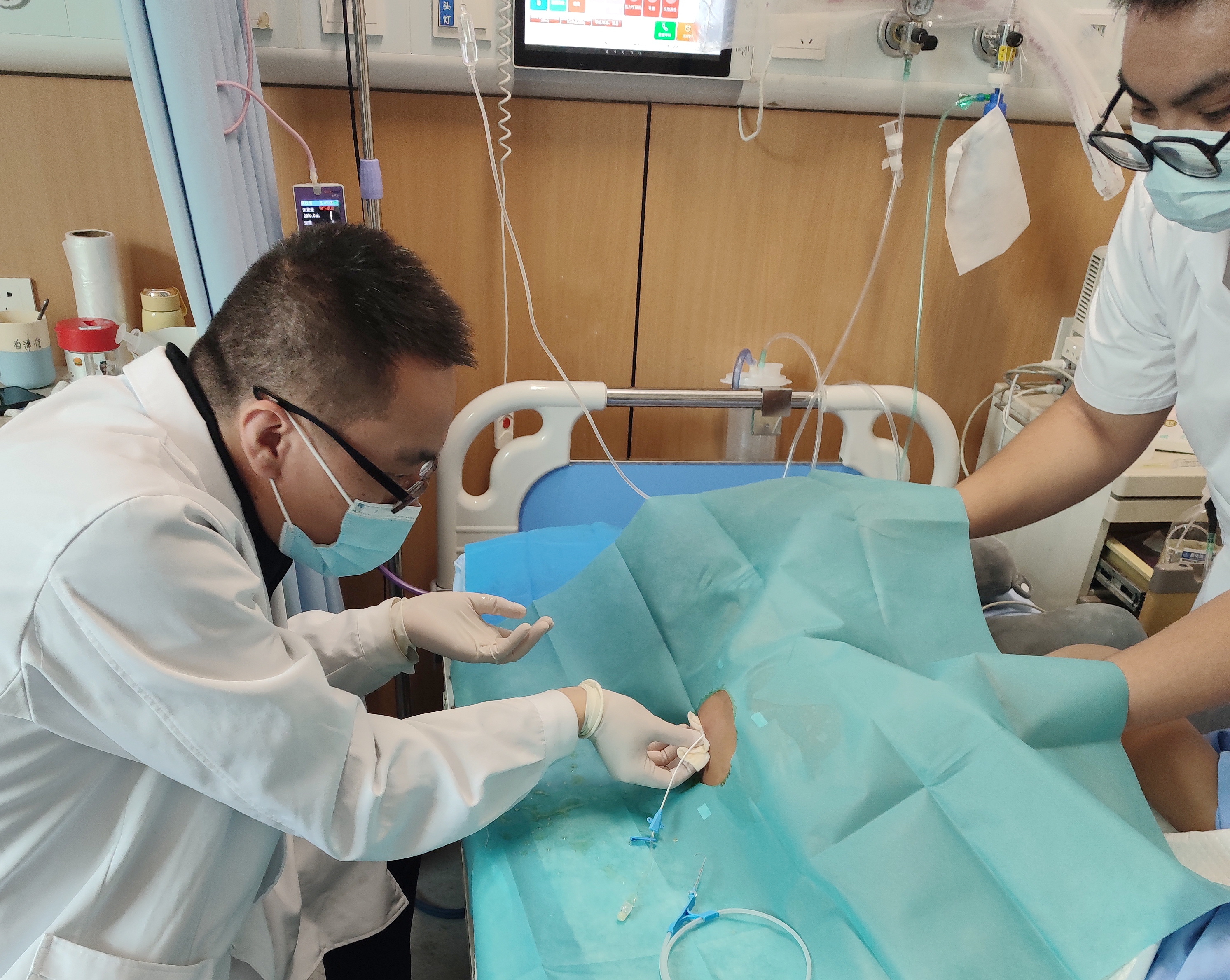 入院檢查顯示:患者雙側(cè)額葉、左側(cè)顳頂葉腦挫裂傷,左側(cè)額顳頂部急性硬膜下血腫、創(chuàng)傷性蛛網(wǎng)膜下腔出血,GCS評分僅4+T分(注:GCS評分3分為最差,T代表氣管插管)。神經(jīng)外科團(tuán)隊迅速制定個性化方案,實施氣管切開術(shù),并聯(lián)合脫水降顱壓、低溫腦保護(hù)、促醒、抗感染等綜合治療,同時輔以早期康復(fù)訓(xùn)練。