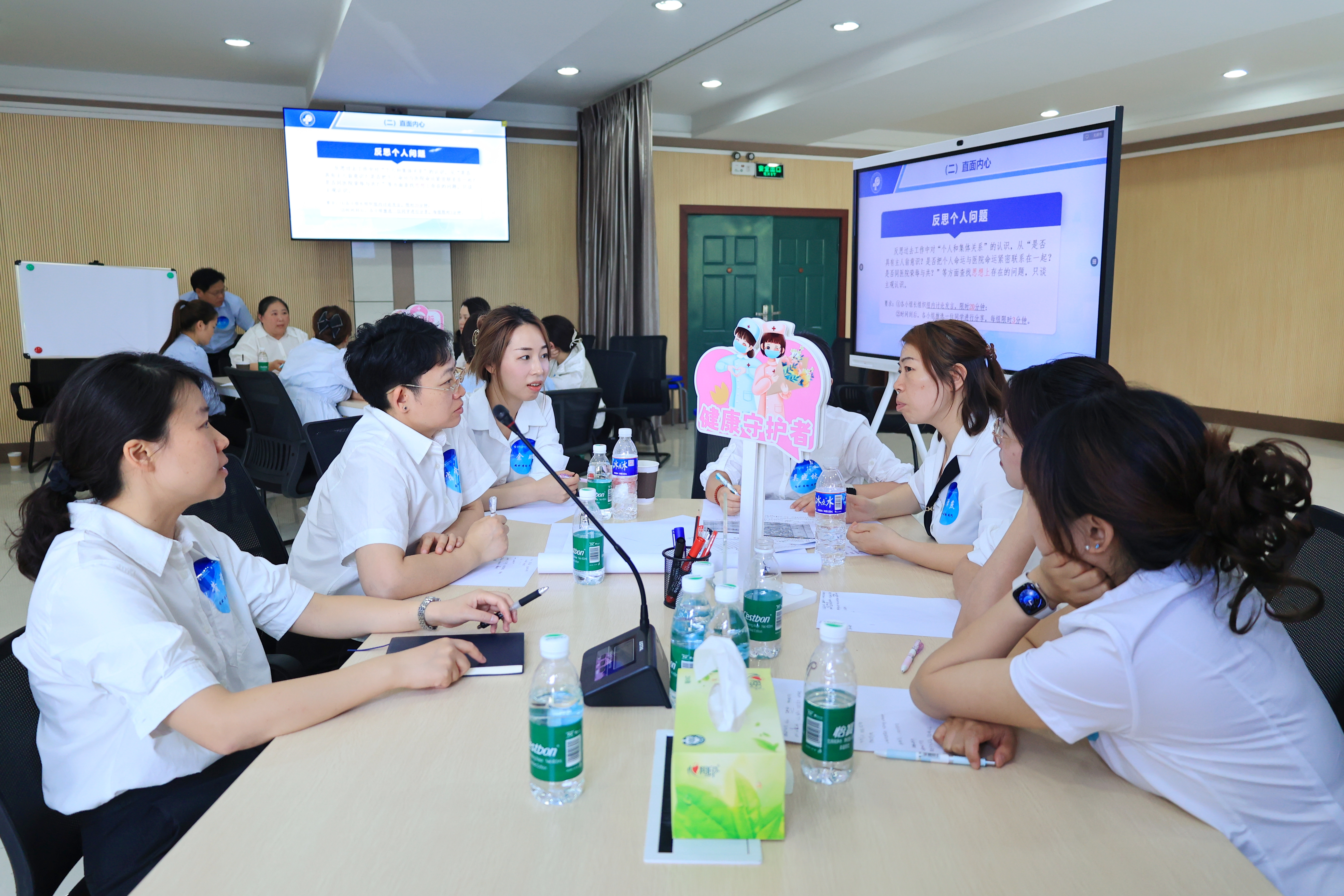 在“直面內(nèi)心”環(huán)節(jié),與會(huì)者圍繞“主人翁意識(shí)”“個(gè)人與集體關(guān)系”展開深度自省。“過(guò)去我更關(guān)注科室‘小目標(biāo)’,現(xiàn)在意識(shí)到必須跳出‘一畝三分地’?!币晃蛔o(hù)士長(zhǎng)的發(fā)言引發(fā)共鳴。隨后的“直擊問(wèn)題”階段,各小組聚焦學(xué)科能力不足,患者信任度不高、醫(yī)院整體發(fā)展定位不明確、管理混亂等核心痛點(diǎn),大膽地提出醫(yī)院目前面臨的突出問(wèn)題。